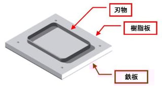 図のように、ベースの樹脂板(ベニヤ板の場合もあります)にレーザーで溝加工を施し、その溝と同じ形状に曲げた銅の刃物を埋め込んだものです。